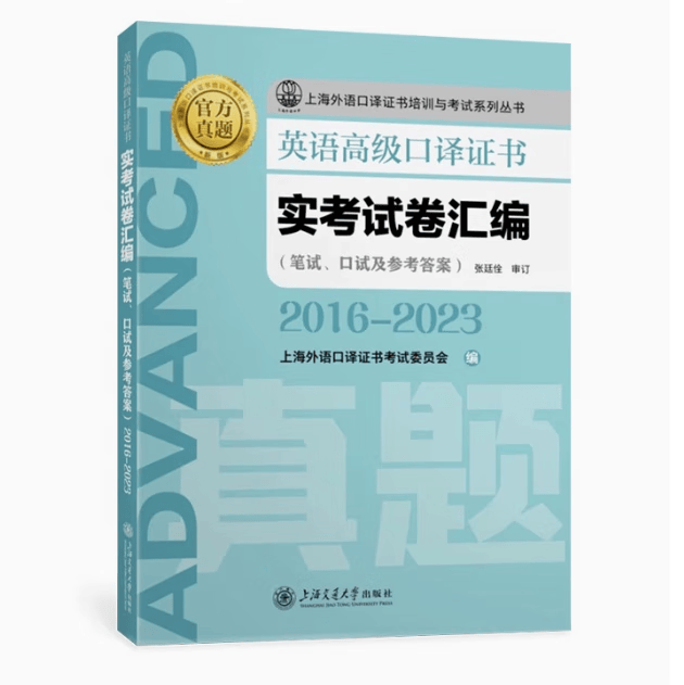 1、英语高级口译证书考试:分为综合笔试和口试。笔试合格者方能参加口试。综合笔试包括听力、阅读、翻译(笔译)三大部分,含六个考试单元,考试时间为180分钟。口试包括口语和口译两部分,时间约25分钟。培训教材为《上海外语口译证书培训与考试系列丛书——英语高级口译证书考试教程》(第五版,全套共五册),上海外语教育出版社:包括听力教程、阅读教程、翻译教程、口语教程、口译教程。真题为《英语高级口译证书——实考试卷汇编2016-2023》。
